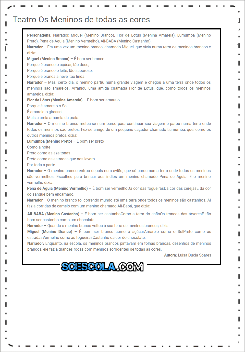 Teatro Os Meninos De Todas As Cores Trabalhando A