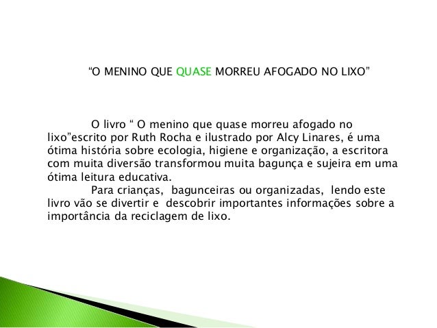 O Menino Que Quase Morreu Afogado No Lixo Ruth Rocha