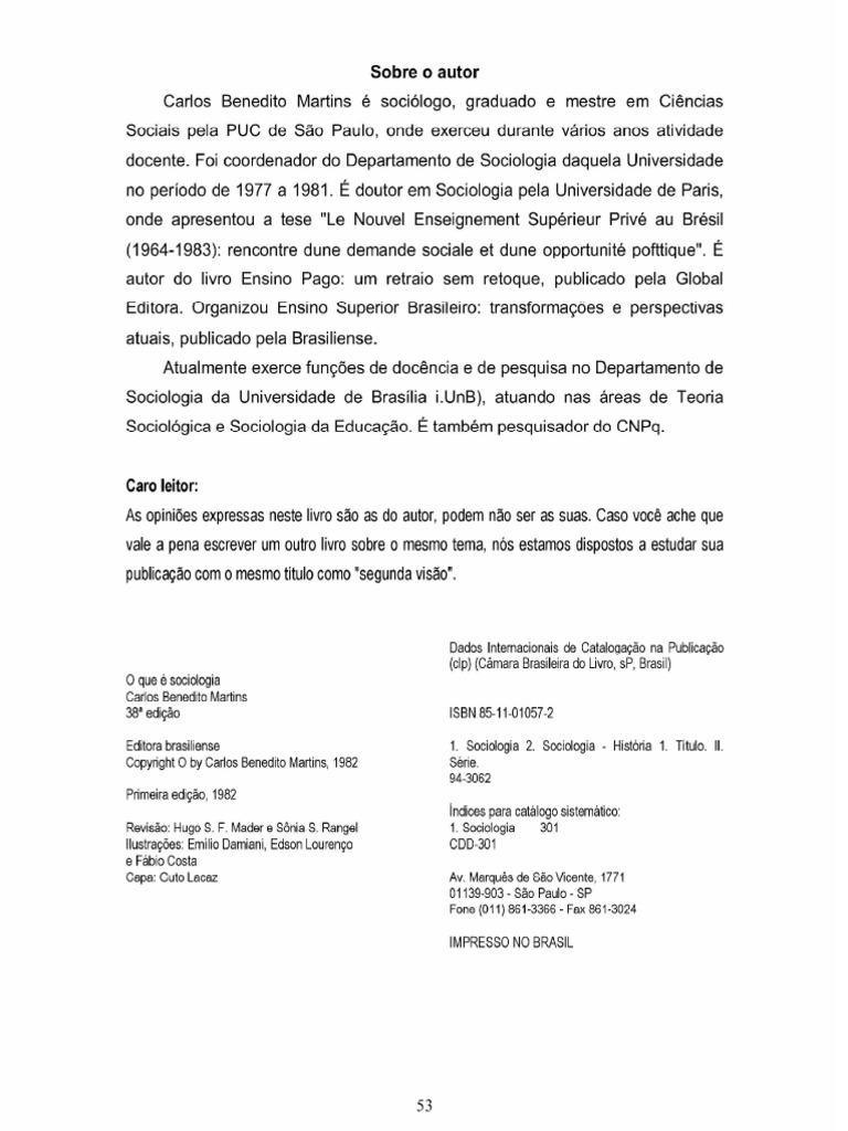 Abaixo estão as fotos do livro o que é sociologia carlos benedito martins pdf que o administrador blog Resenhas de Livros 2019 coletou.