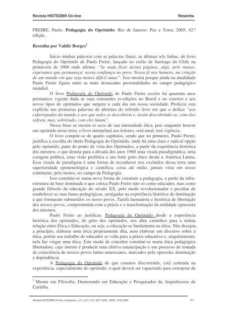 Resenha Crítica Pedagogia Do Oprimido Pedagogia 6