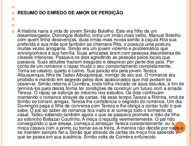 Amor De Perdição Resumo Do Livro Amor De Perdição