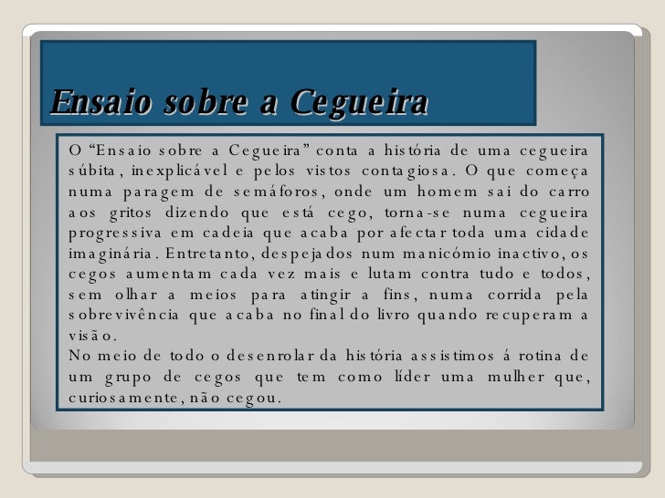 Relatorio Sobre Livro Ensaio Sobre A Cegueira Livros