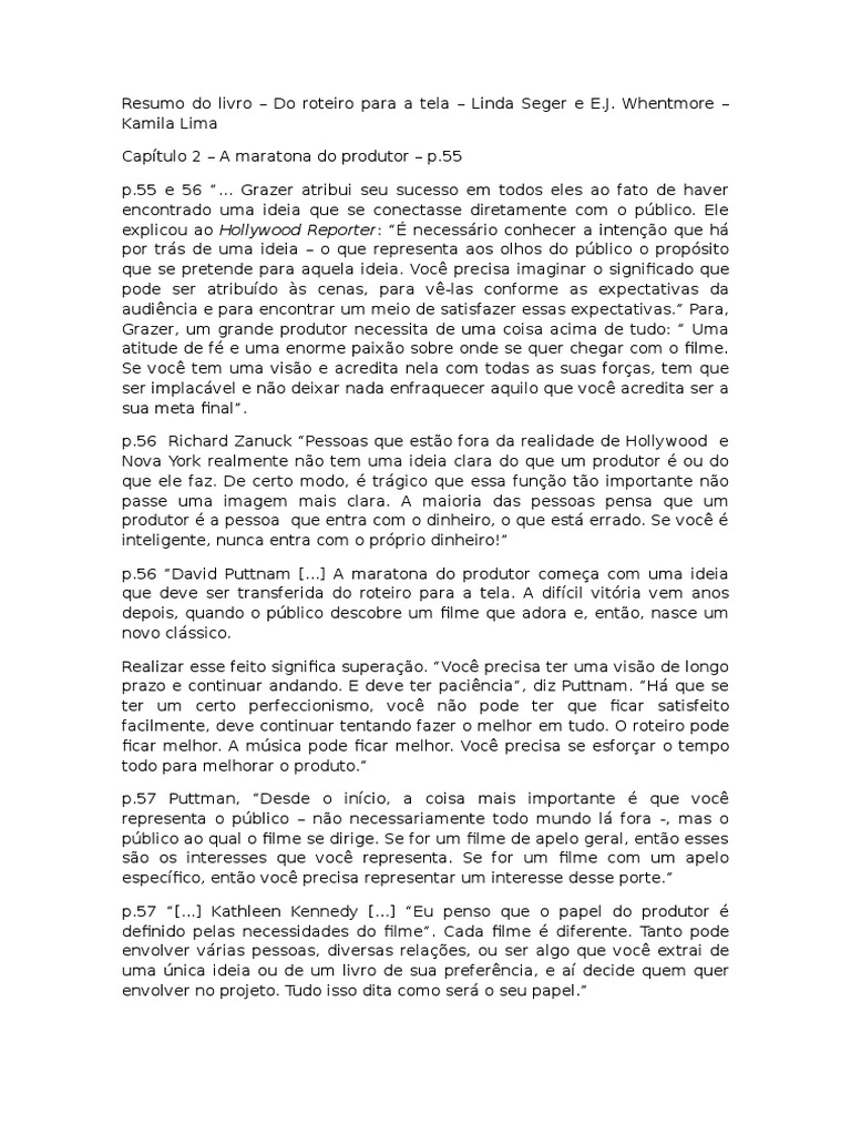Resumo Do Livro Do Roteiro Para A Tela Linda
