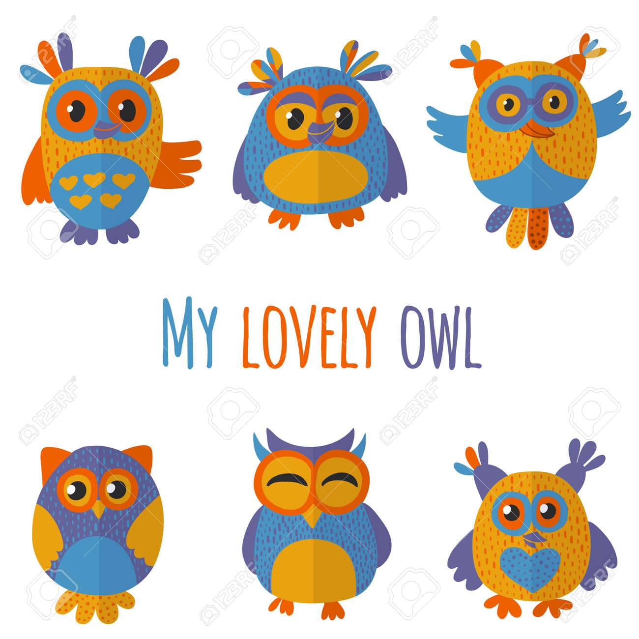 Vector Set With Cute Owls Kids Drawing Style Hand Drawn Picture