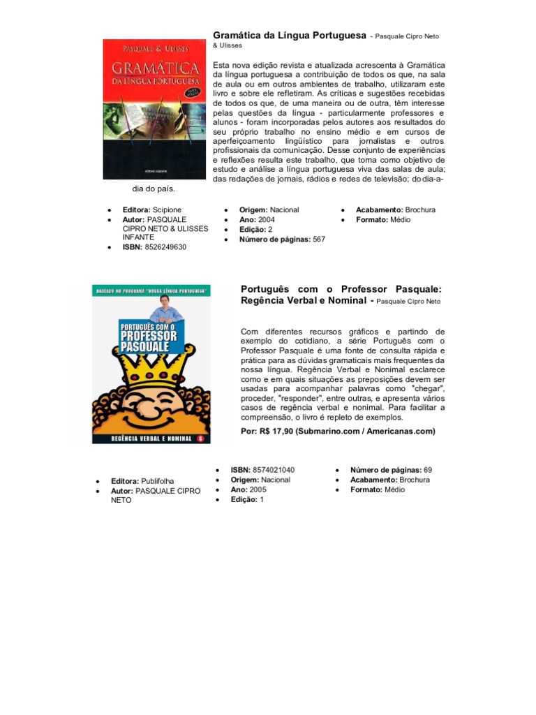 Abaixo estão as fotos do gramatica da lingua portuguesa pasquale e ulisses livro do professor pdf que o administrador blog Resenhas de Livros 2019 coletou.