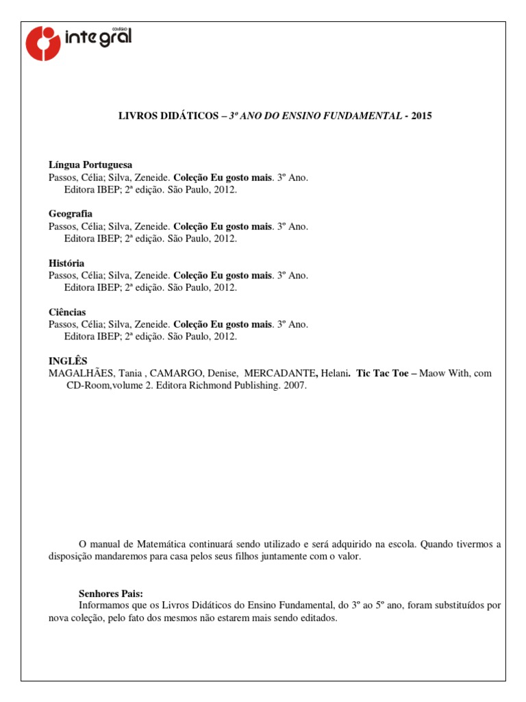 Livros Didáticos 3º Ano Do Ensino Fundamental 2015