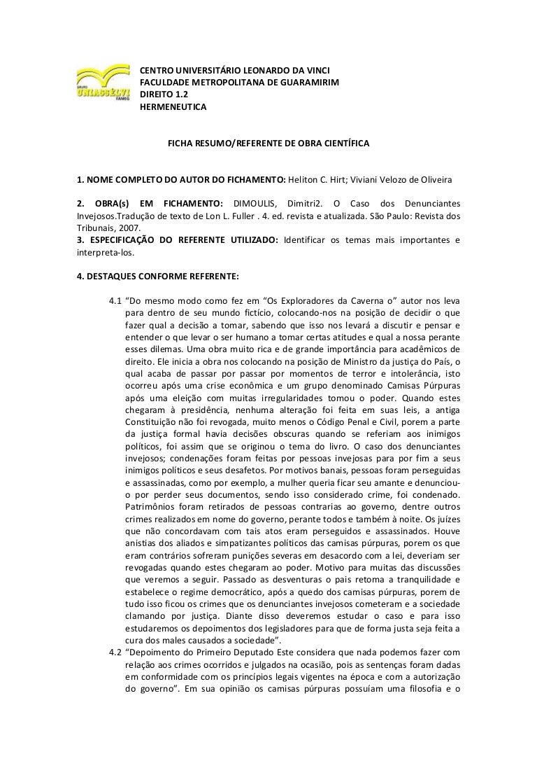 O Caso Dos Denunciantes Invejosos Lon Fuller Completo