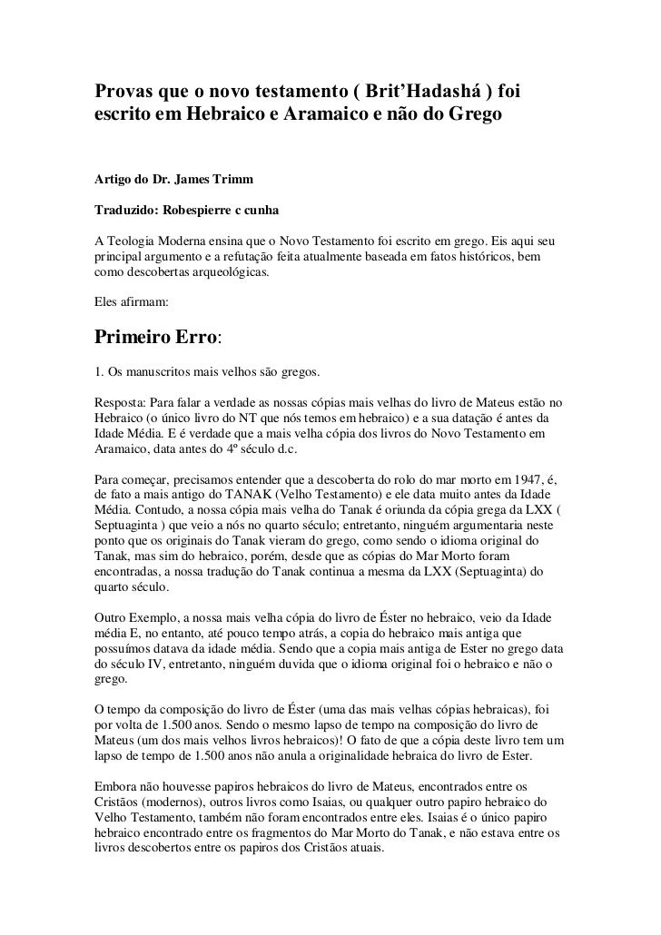 Novo Testamento Foi Escrito Em Aramaico E Hebraico