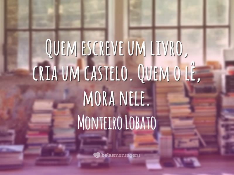 Conheça um pouquinho de sua história aqui. Provavelmente este será o título mais longo entre os escolhidos para as crônicas que escrevi e um dos mais encantadores também. Quem escreve um livro cria um castelo quem o lê mora nele frase de monteiro lobato nosso grande motivador da literatura infantil no brasil por isso mesmo que essa data é comemorado no dia de hoje 18 de abril dia do seu nascimento. Quem escreve um livro cria um castelo quem o lê mora nele seja você mesmo porque ou somos nós mesmos ou não somos coisa nenhuma talento não pede passagem impõe se ao mundo. 9 quem escreve um livro cria um castelo quem o lê mora nele 10 foi pelas ruas da vida que andei descalço e esfolei meus pés de amores vãos 11 há dois modos de escrever. Um é escrever com a idéia de não desagradar ou chocar ninguém.