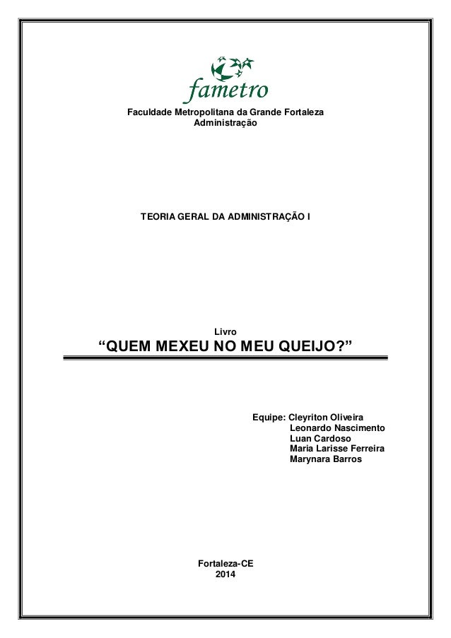 Quem mexeu no meu queijo65ª ed. As lições quem mexeu no meu queijo traz de maneira simples questionamentos de profundidade impressionante. O livro quem mexeu no meu queijo. O livro quem mexeu no meu queijo de autoria de spencer johnson escritor bastante renomado com publicação de vários títulos vendidos no mundo todo conta de forma simples e prazerosa uma história que se passa em um labirinto habitado por quatro personagens engraçados dois ratos sniff e scurry e. Eu mesma já o li três vezes em ocasiões diferentes da minha vida. Dois ratos e dois humaninhos. Não sou muito de ler livros de autoajuda mas recomendo muito quem mexeu no meu queijo. Eles dizem que conhecem muitas pessoas com hen que sentem medo da mudança e por isso acabam ficando estagnados e sem evoluir. O livro quem mexeu no meu queijo é muito conhecido no mundo corporativo e utilizado em treinamentos. Ele conta a historia de quatro pequenos personagens que corriam em um labirinto à procura de queijo para alimentá los e fazê los felizes. O livro quem mexeu no meu queijo. Quem mexeu no meu queijo é uma parábola de linguagem simples e que pode ser lido e compreendido por todos. Quem mexeu no meu queijo.
