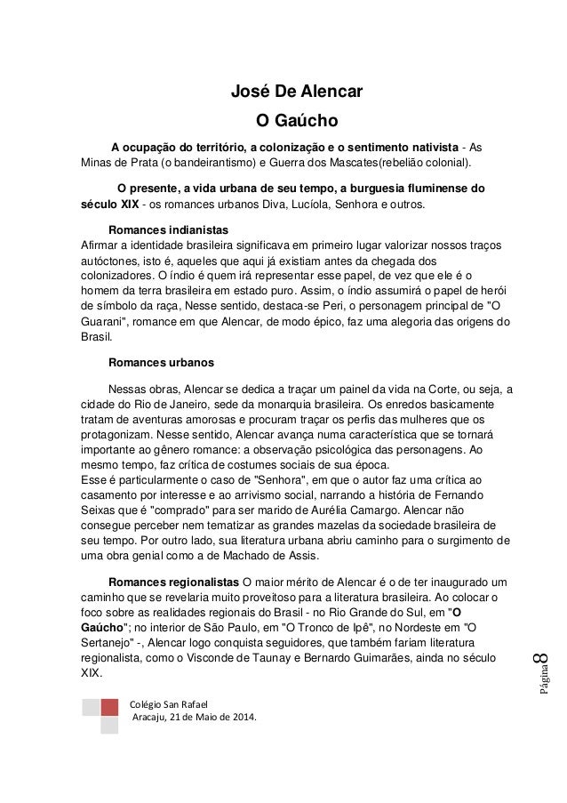 Literatura O Gaúcho José De Alencar Leitura E Analize 2014