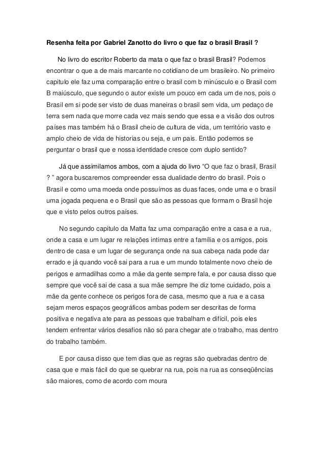 Abaixo estão as fotos do resumo do livro o que faz o brasil brasil que o administrador blog Resenhas de Livros 2019 coletou.