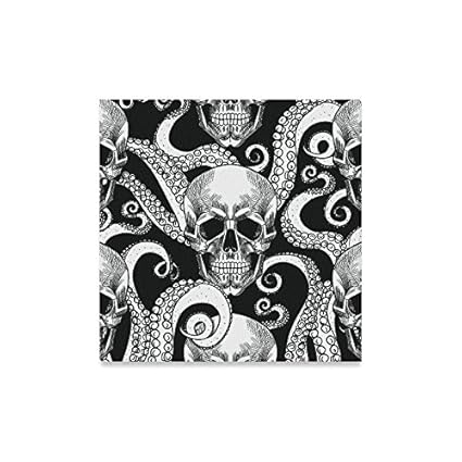 Interestprint Cool Skull And Octopus Tentacles Wooden Frame Modern Canvas Prints Painting Wall Art For Home Decoration Wall Decor 16 X 16 Inches