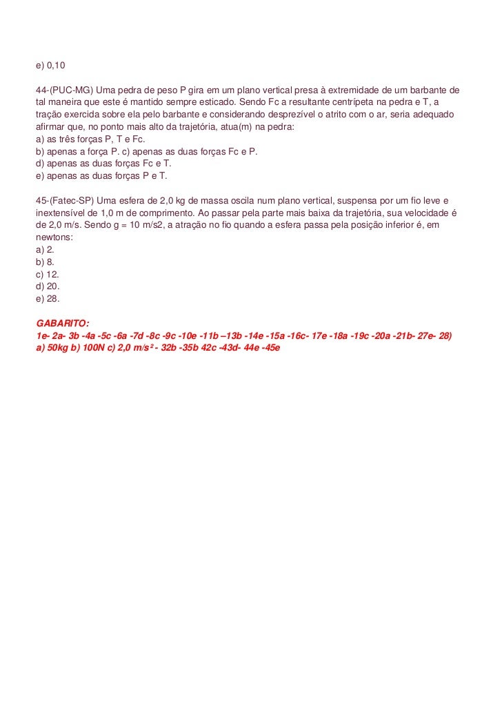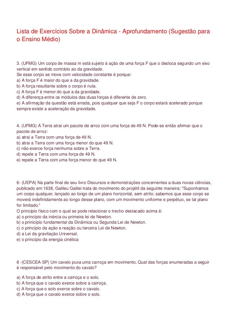 Lista De Exercícios Sobre A Dinâmica
