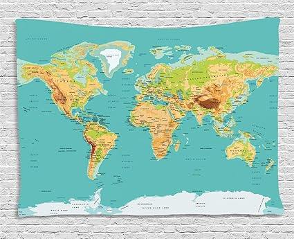 Ambesonne Map Tapestry Map Of The World Geography Continents And Countries Physical Cartography Image Wall Hanging For Bedroom Living Room Dorm 60