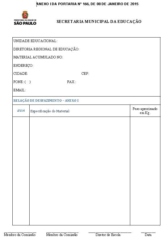 Portaria Nº 166 De 08012015 Dispõe Sobre Desfazimento