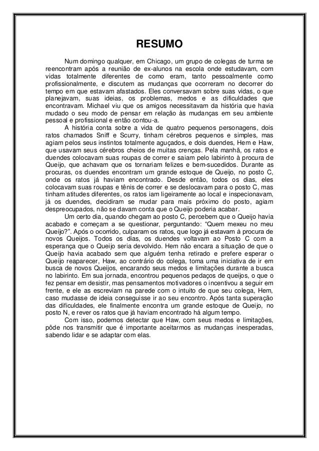 Resumo Do Livro Quem Mexeu No Meu Queijodoc Tempo Vida