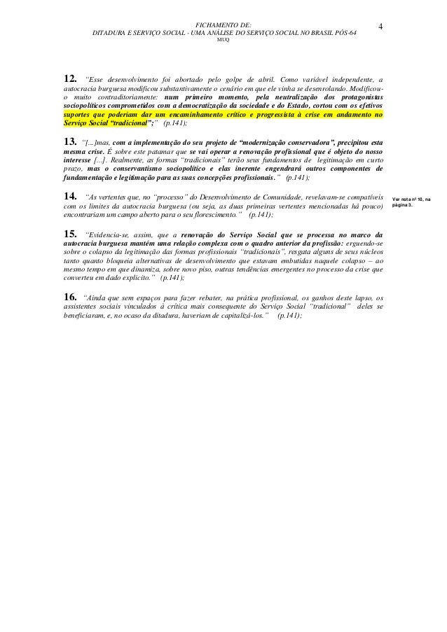 Doc Fichamento Do Livro Ditadura E Serviço Social Uma
