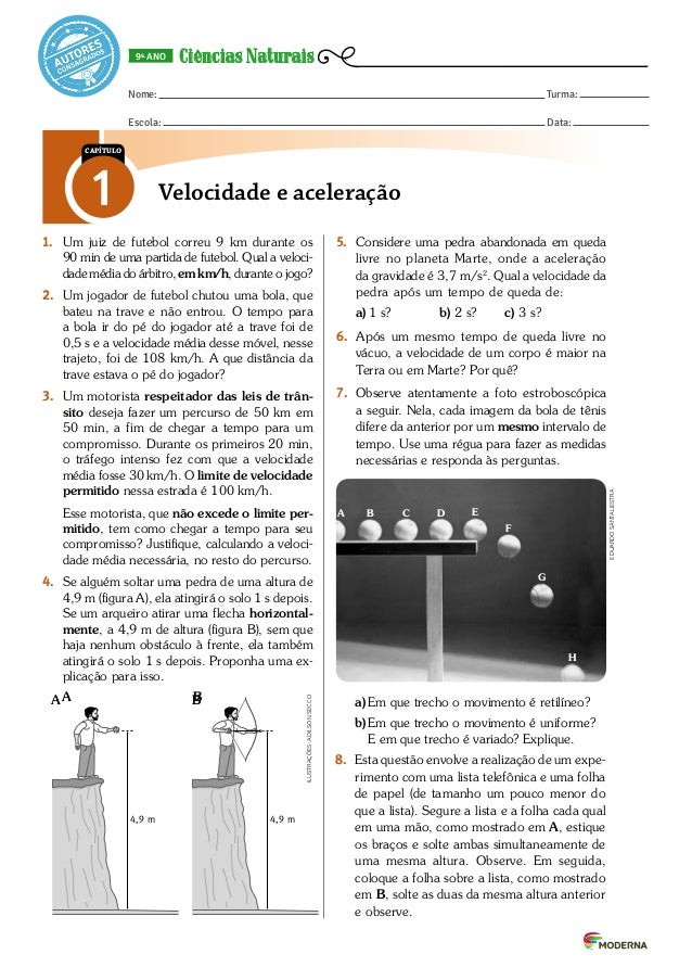 Exrecicio De Fisica Do Primeiro Ano Velocidade Trajetória