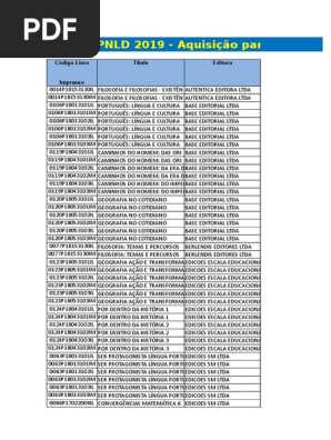 Tabela De Negociacao Pnld 2019 Por Titulo Física E