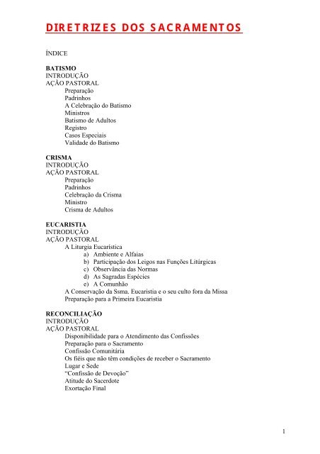 Diretrizes Dos Sacramentos Diocese De Amparo