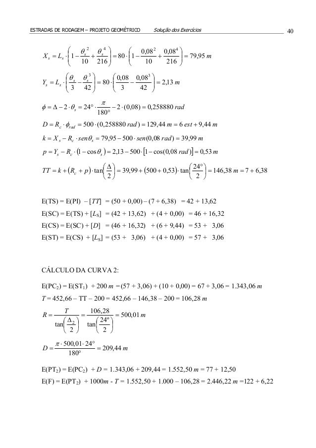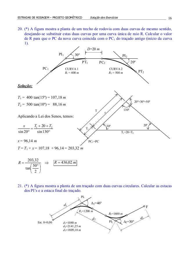 Estradas De Rodagem Projeto Geométrico Resolução Dos Exercícios