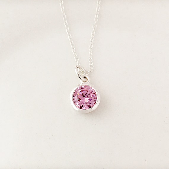 October Birthstone Necklace Pink Tourmaline Color Cz Simple Personalized Birthday Gift For Women Or Girls Sterling Silver Jewelry