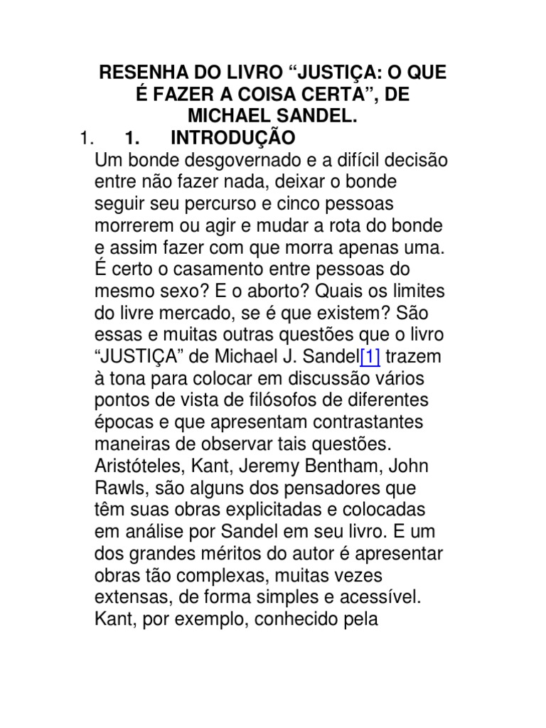Informação relevante relacionada Resenha Do Livro Justiça O Que é Fazer A Coisa Certa.