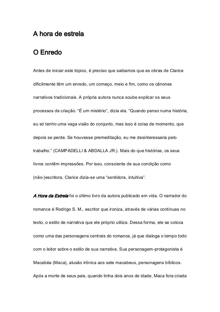 Abaixo estão as fotos do resumo do livro a hora da estrela que o administrador Resenhas de Livros blog 2019 coletou.
