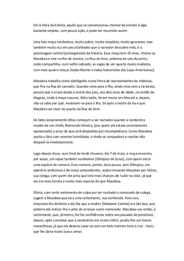 A Hora Da Estrela Clarice Lispector Resumo Cola Da Web