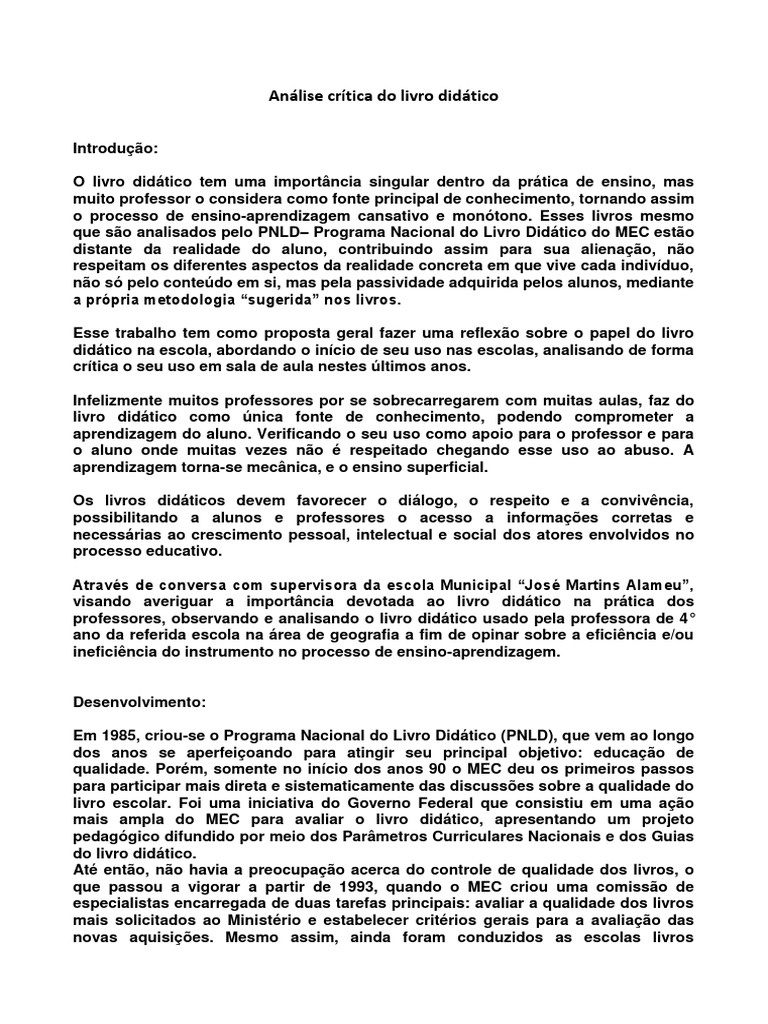 Analise Do Livro Didatico O Objetivo Deste Trabalho é