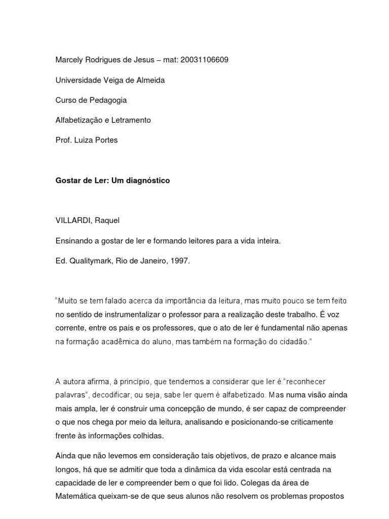 Encontre mais totalmente relacionado Fichamento Do Livro A Importancia Do Ato De Ler.