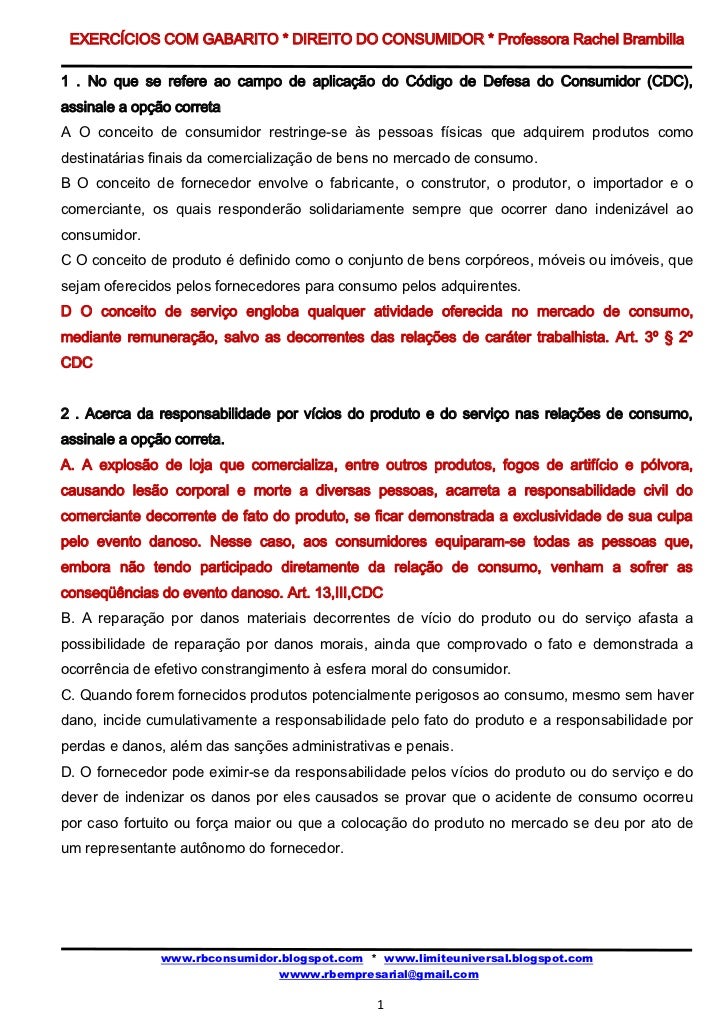 Questões Com Gabarito Código De Defesa Do Consumidor