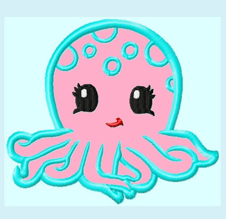 Cute Baby Octopus Applique Embroidery Designs Instant Download